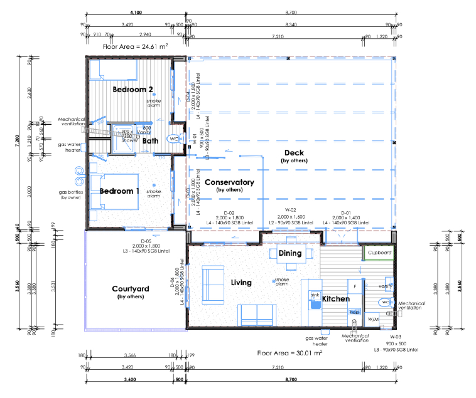 - 8.7m x 3.6m + 7.2m x 3.6m