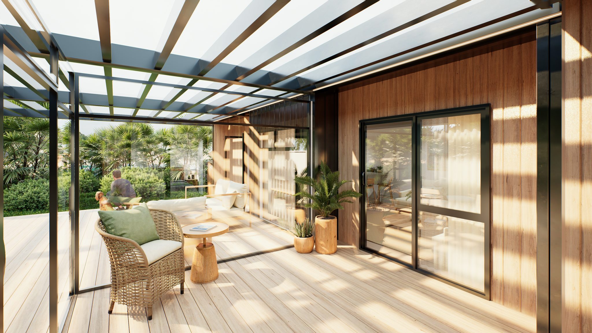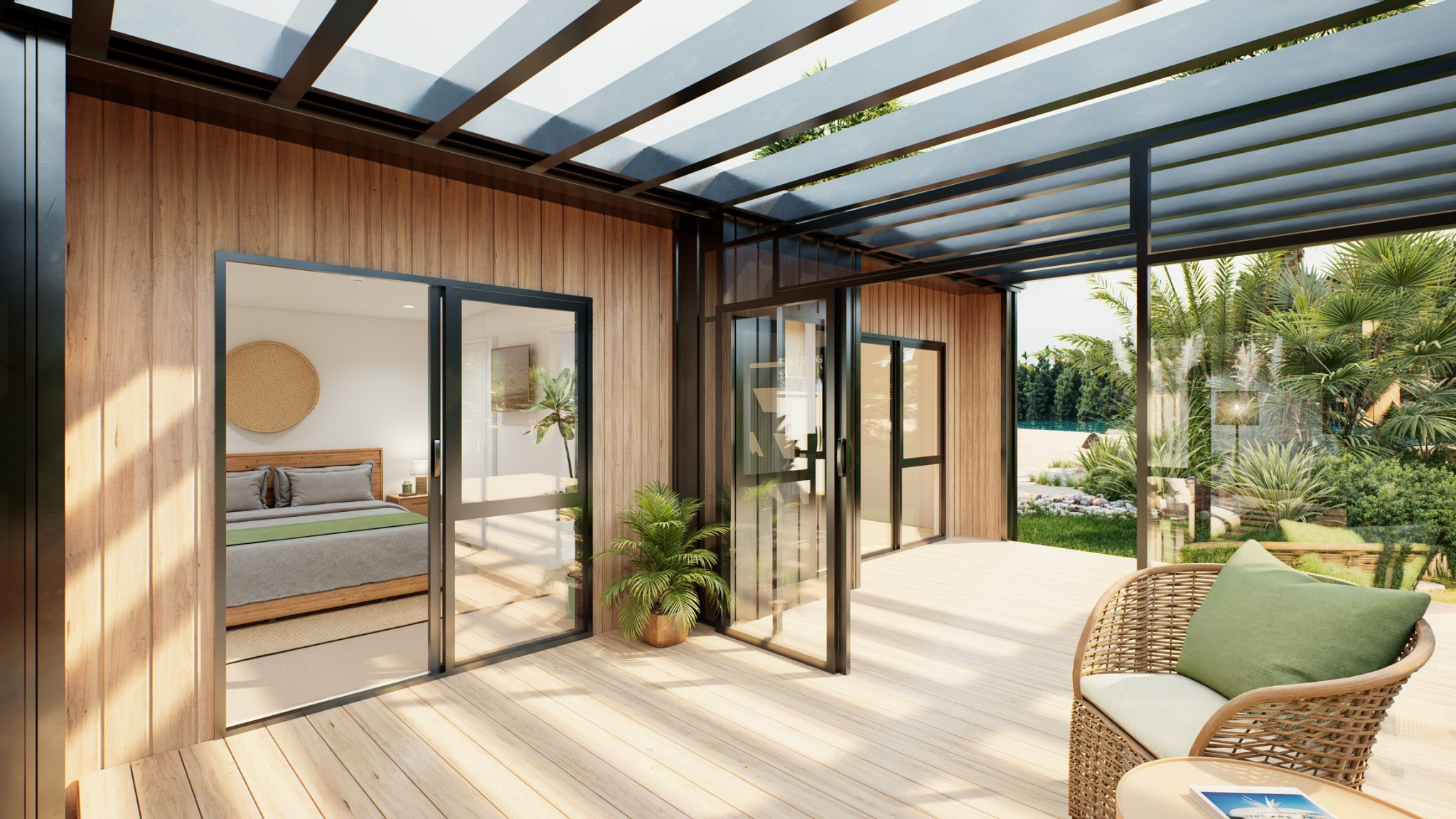 This design consists of a 8.7m x 3.6m cabin (4.2m with soffit and wing walls) placed next to a 7.2m x 3.6m cabin (4.2m with soffit and wing walls)